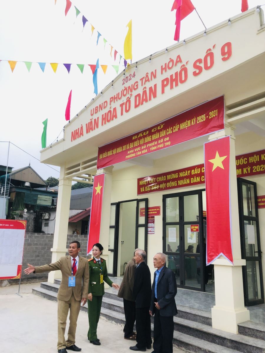 Trong ngày bầu cử đại biểu Quốc hội khóa XVI và đại biểu Hội đồng nhân dân các cấp nhiệm kỳ 2026 – 2031, Công an phường Tân Hòa đã triển khai các biện pháp bảo đảm an ninh, trật tự tại các khu vực bỏ phiếu, đồng thời hỗ trợ cử tri, nhất là người cao tuổi, người gặp khó khăn trong việc đi lại, thực hiện quyền bầu cử theo quy định.