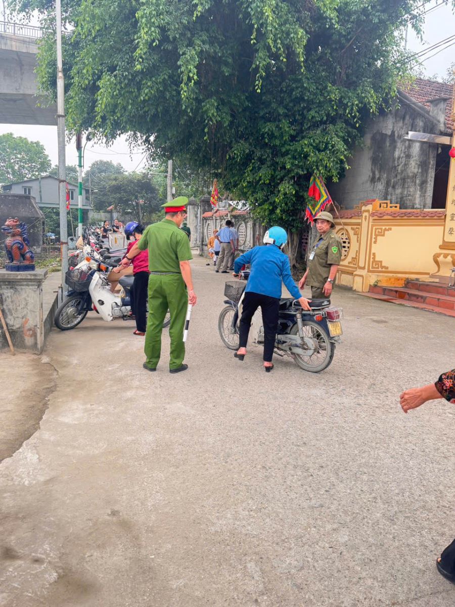 Lực lượng Công an phường phối hợp với lực lượng tham gia bảo vệ an ninh, trật tự ở cơ sở bảo đảm trật tự công cộng tại khu vực diễn ra các nghi lễ