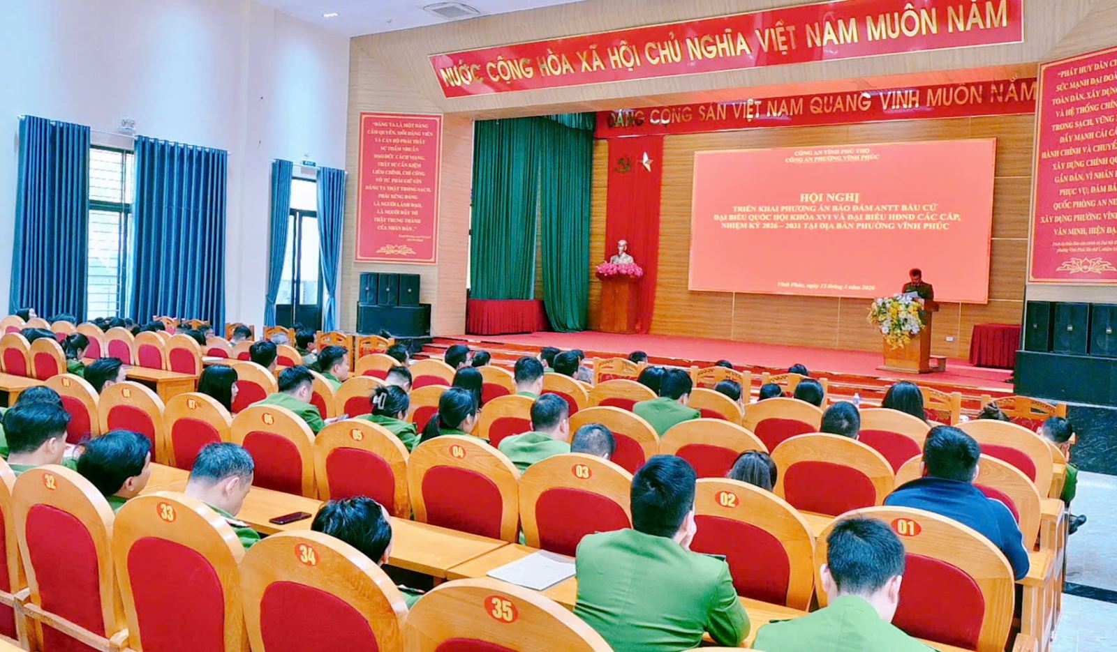 Ngày 13/3/2026, Công an phường Vĩnh Phúc, tỉnh Phú Thọ tổ chức hội nghị triển khai phương án bảo đảm an ninh, trật tự phục vụ cuộc bầu cử đại biểu Quốc hội khóa XVI và đại biểu HĐND các cấp nhiệm kỳ 2026–2031. Hội nghị nhằm quán triệt nhiệm vụ, phân công lực lượng và thống nhất các biện pháp bảo đảm an toàn tại các khu vực bỏ phiếu trên địa bàn.