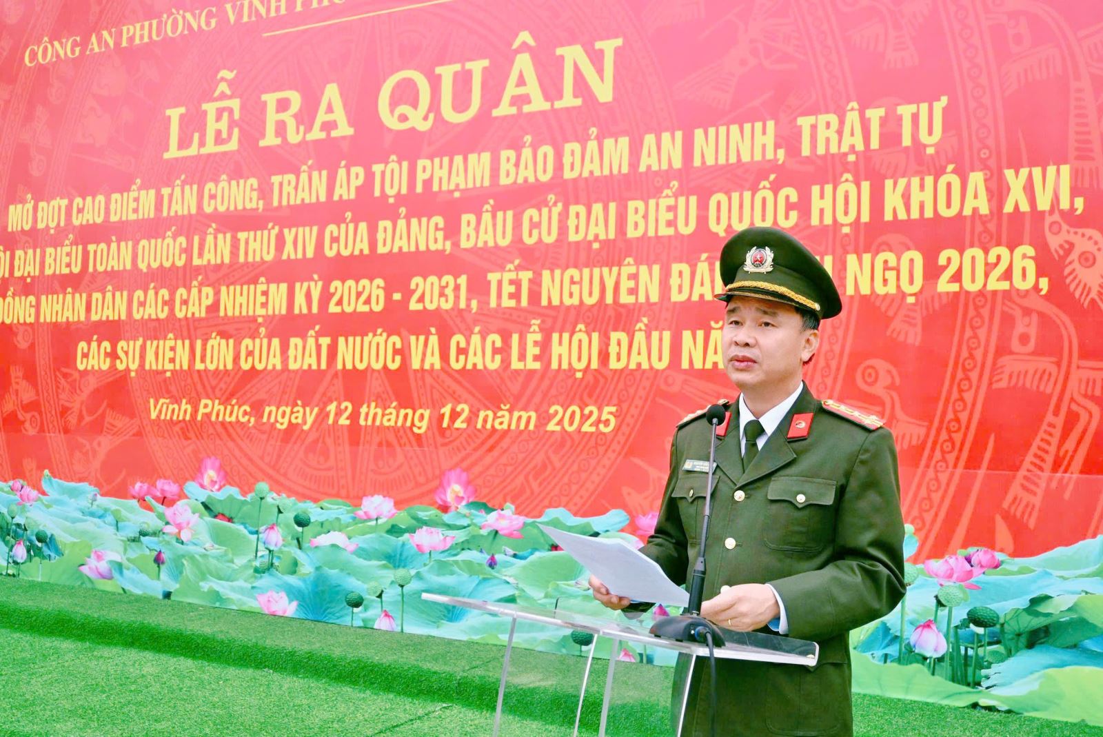 Công an phường Vĩnh Phúc và Vĩnh Yên tổ chức lễ diễu hành ra quân thực hiện cao điểm tấn công, trấn áp tội phạm, bảo đảm ANTT các sự kiện lớn của đất nước, Tết nguyên đán Bính Ngọ 2026 và các lễ hội đầu năm (14/12/2025)