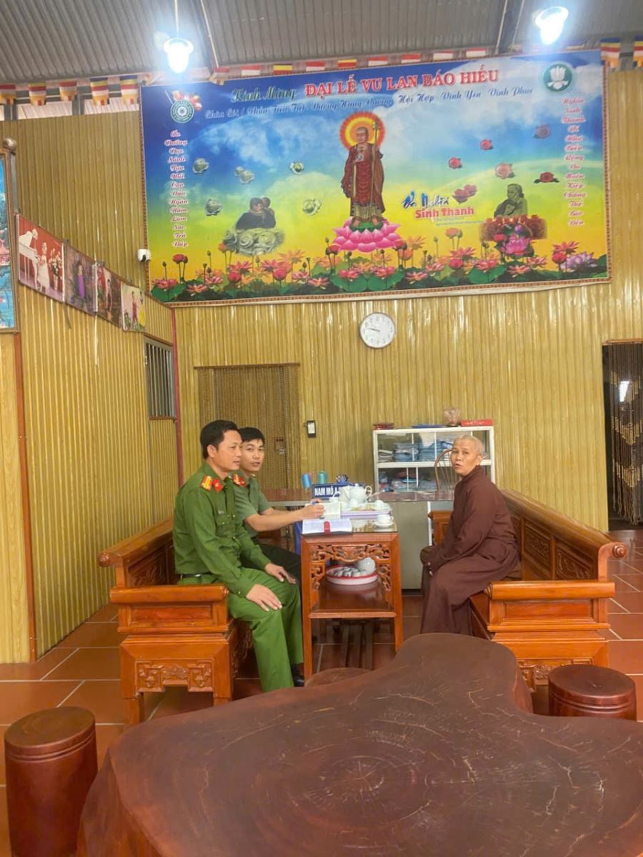 Tại buổi làm việc với Ni sư Thích Đàm Khang - Trụ trì Chùa Cói (Tổ dân phố Quán Tiên, phường Vĩnh Yên), lực lượng Công an phường đã trao đổi thông tin, lắng nghe ý kiến và phổ biến các nội dung trọng tâm như: