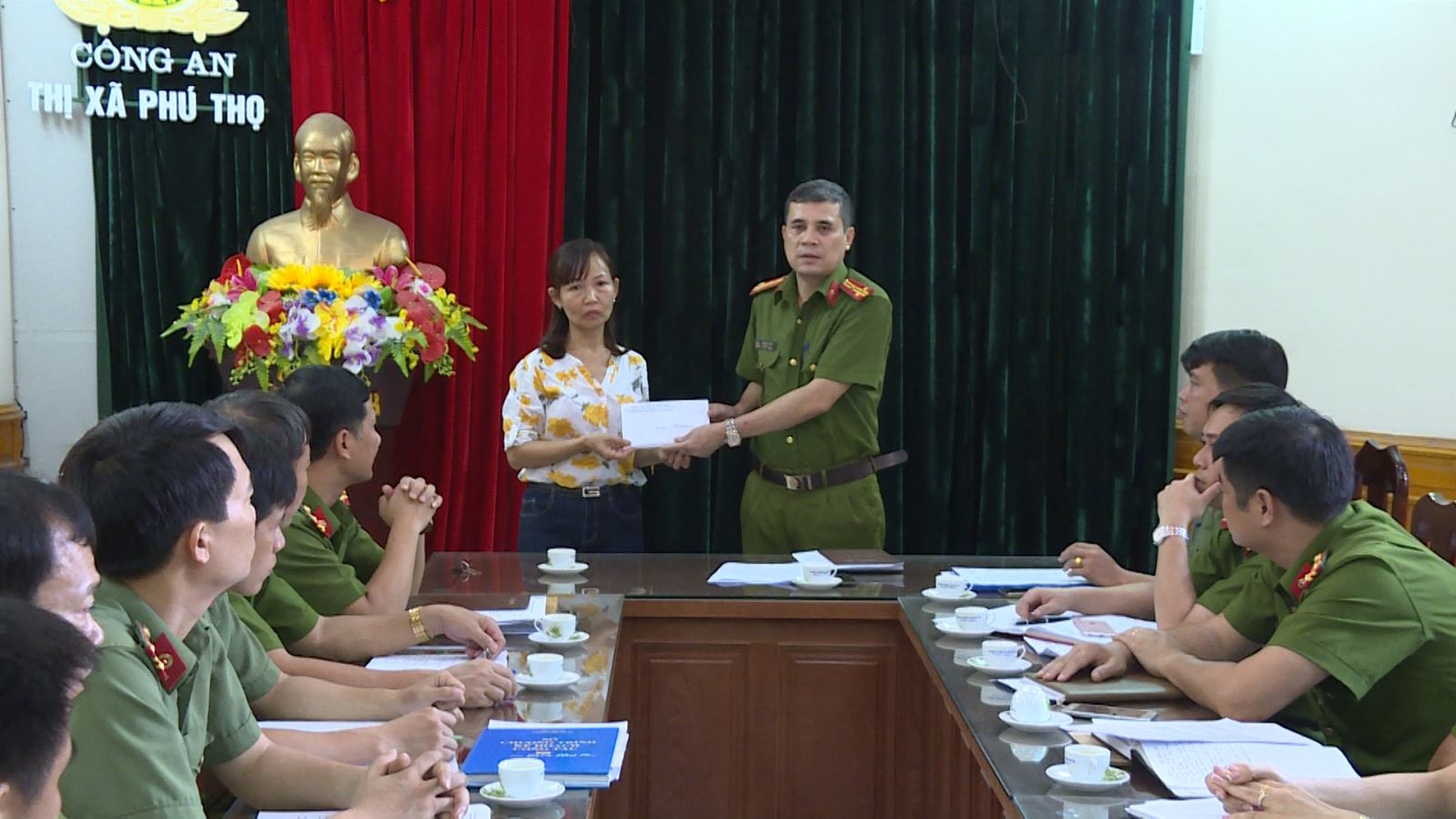 Công an thị xã Phú Thọ vừa tổ chức trao tặng số tiền 50 triệu đồng cho gia đình đồng chí trung tá Nguyễn Ngọc Tuân, cán bộ công an thị xã Phú Thọ có hoàn cảnh khó khăn, mắc bệnh hiểm nghèo.