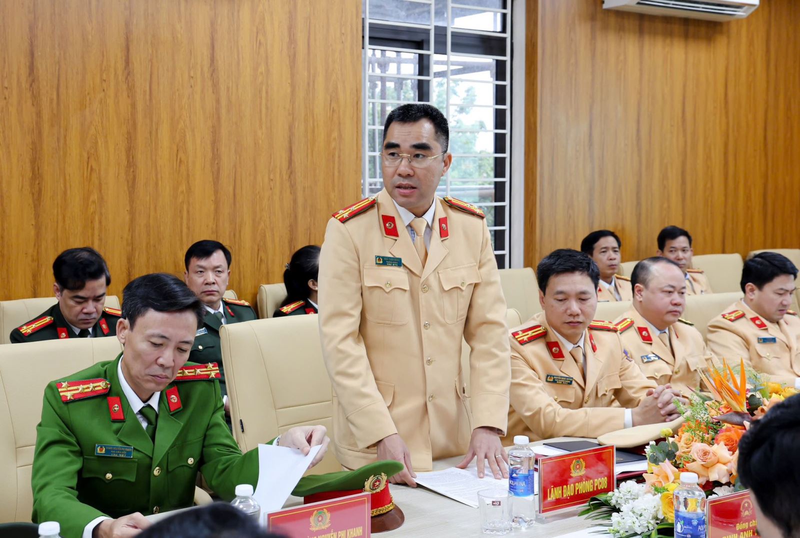 Lãnh đạo Phòng Cảnh sát giao thông báo cáo kết quả công tác đảm bảo ATTTGT trên địa bàn tỉnh Đối với lực lượng Cảnh sát điều tra tội phạm về ma tuý, cán bộ, chiến sĩ đã chủ động nắm chắc tình hình, đấu tranh quyết liệt với tội phạm và tệ nạn ma tuý, triệt phá nhiều đường dây, ổ nhóm phức tạp, góp phần giữ gìn cuộc sống bình yên cho Nhân dân. Bên cạnh công tác đấu tranh, phòng ngừa tội phạm, đơn vị đã tăng cường phối hợp với các lực lượng chức năng và chính quyền địa phương trong công tác tuyên truyền, phòng, chống ma tuý; kịp thời tham mưu cho cấp ủy, chính quyền các giải pháp nâng cao hiệu quả quản lý địa bàn, đối tượng. Trong dịp Tết Nguyên đán, đơn vị triển khai nghiêm túc kế hoạch cao điểm, chủ động phòng ngừa, đấu tranh, quyết tâm không để hình thành các điểm, tụ điểm phức tạp về ma tuý.