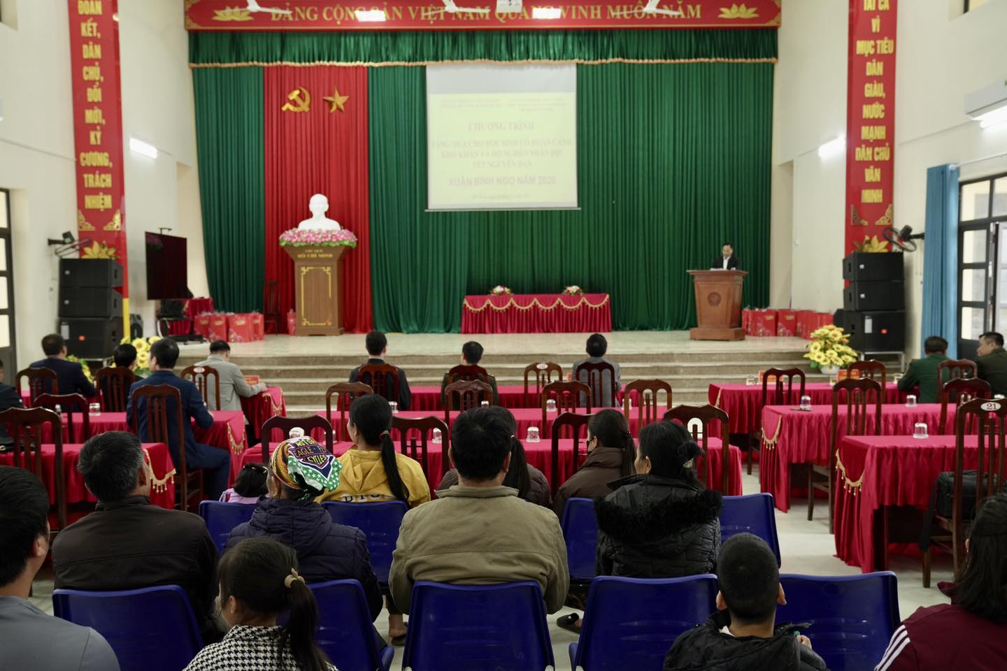 Các đại biểu tham dự chương trình tặng quà Tết cho hộ nghèo, học sinh có hoàn cảnh khó khăn trên địa bàn xã Đại Đồng.
