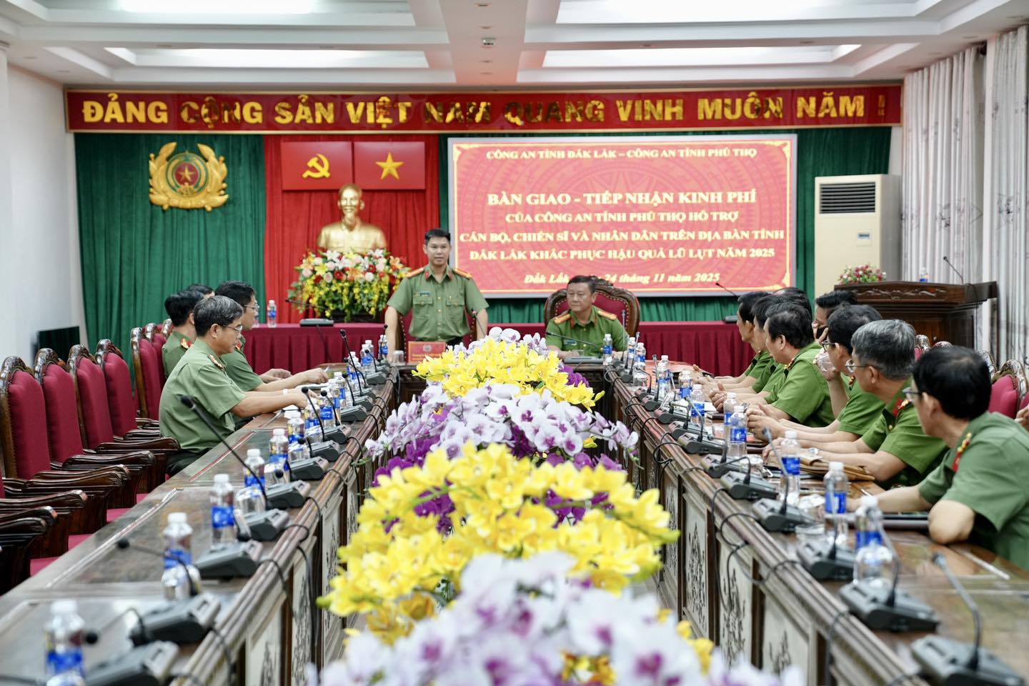 Công an tỉnh Phú Thọ tiếp tục trao kinh phí hỗ trợ khắc phục thiệt hại do mưa lũ tại Công an tỉnh Đắk Lắk (24/11/2025)