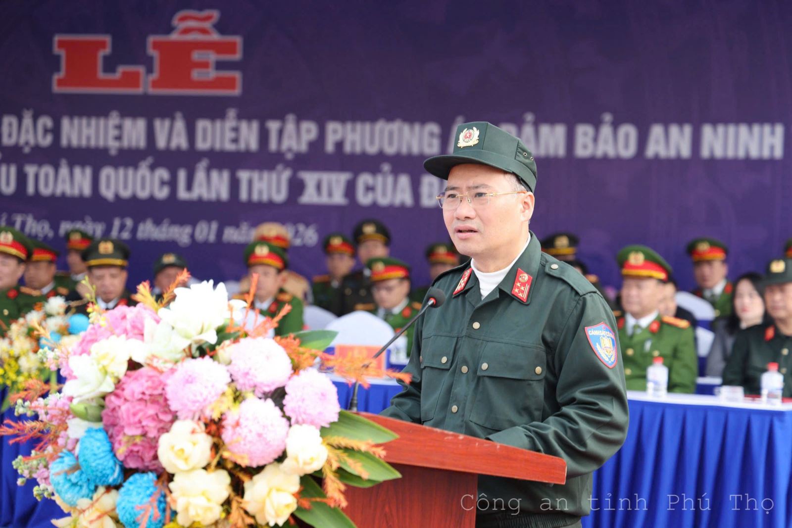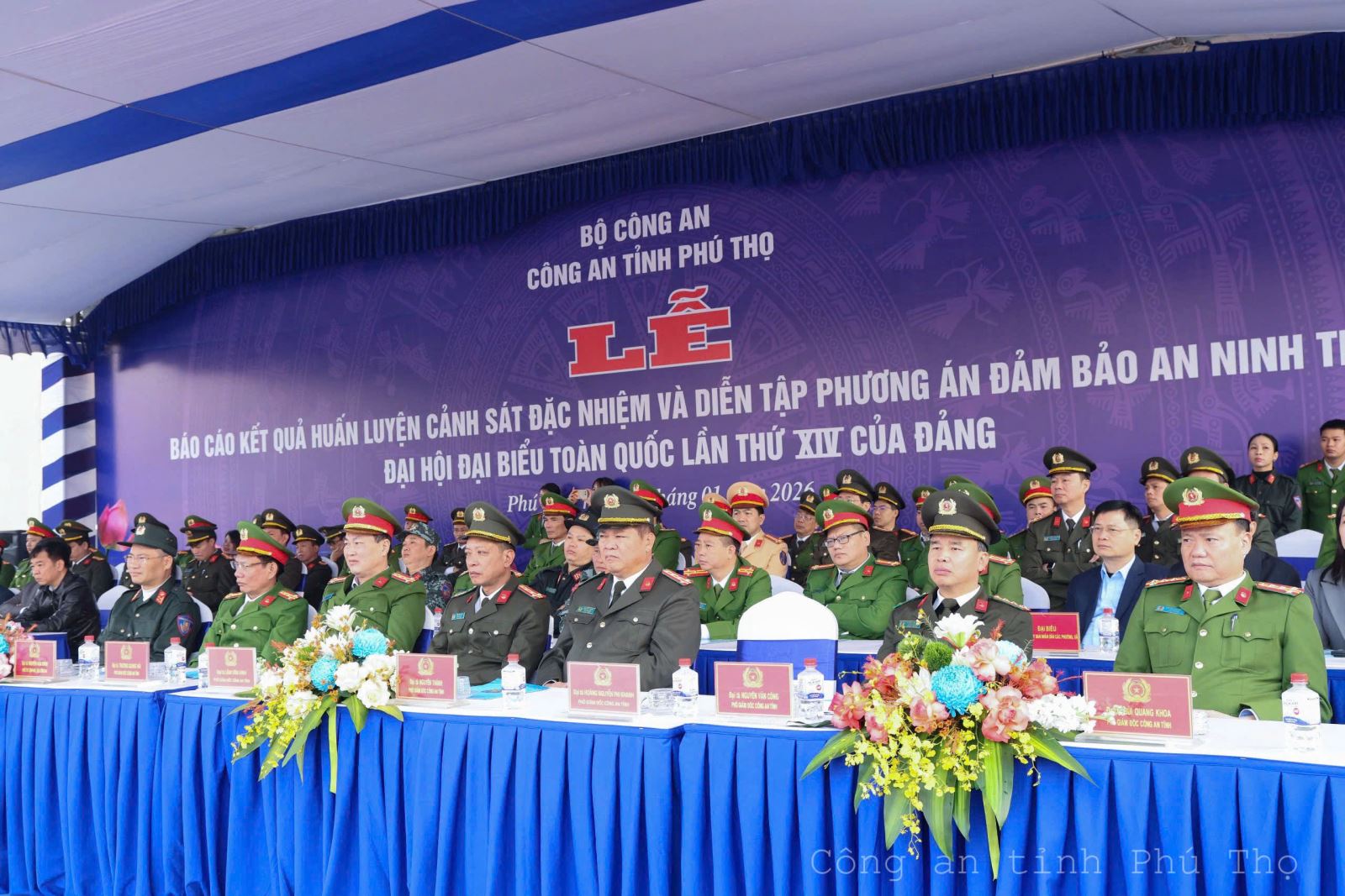 Công an tỉnh Phú Thọ tổ chức Lễ báo cáo kết quả huấn luyện, diễn tập phương án của lực lượng Cảnh sát đặc nhiệm bảo đảm ANTT Đại hội Đảng toàn quốc lần thứ XIV (13/01/2026)