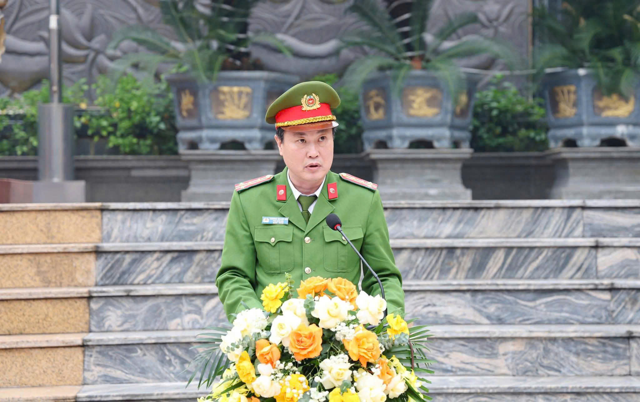 Đồng chí Đại tá Trương Quang Hải - Phó Giám đốc Công an tỉnh phát biểu tại Lễ ra quân