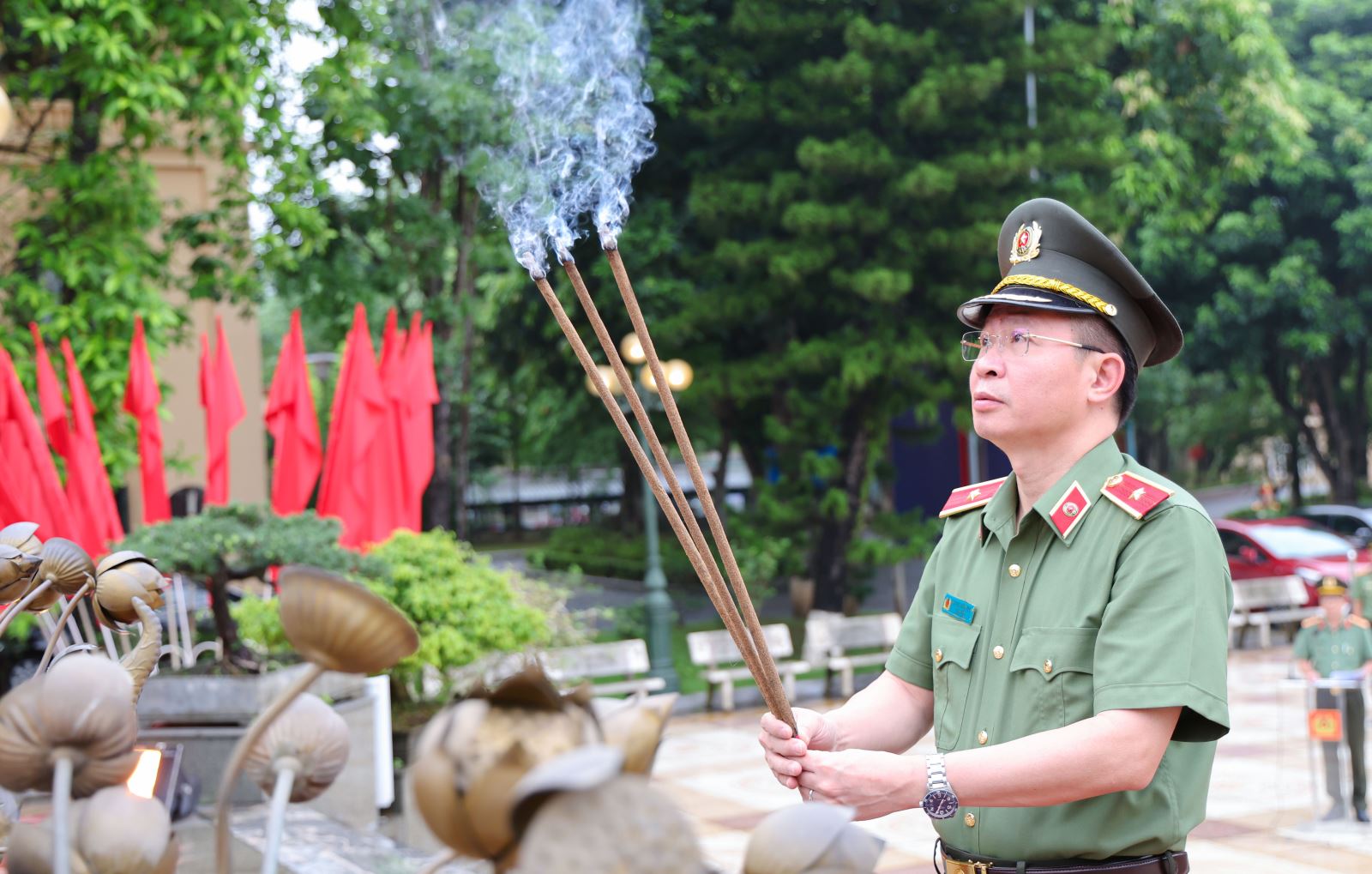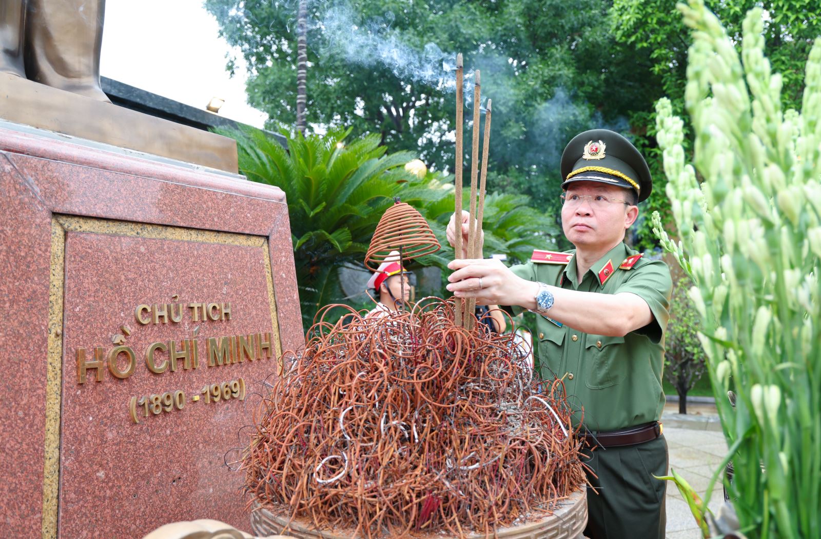 Sáng ngày 01/7/2025, trước ngày làm việc đầu tiên của Công an tỉnh Phú Thọ mới, Đảng ủy – Ban Giám đốc Công an tỉnh đã tổ chức Lễ dâng hoa, dâng hương tưởng niệm Chủ tịch Hồ Chí Minh tại Tượng đài Chủ tịch Hồ Chí Minh trong khuôn viên Công an tỉnh. Thiếu tướng Nguyễn Minh Tuấn, Ủy viên Ban thường vụ Tỉnh ủy, Bí thư Đảng ủy, Giám đốc Công an tỉnh chủ trì lễ dâng hương.