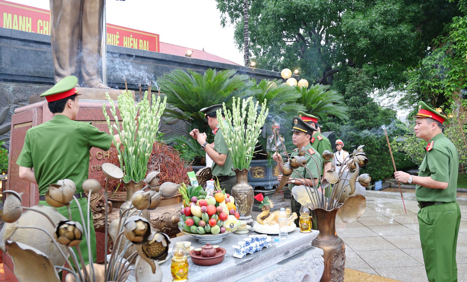 Trong không khí trang nghiêm, xúc động, các đồng chí trong Đảng ủy - Ban Giám đốc, các đồng chí Trưởng các phòng nghiệp vụ và đồng chí Trưởng Công an phường Việt Trì đã thành kính dâng hương, dâng hoa tưởng nhớ và xin tri ân công lao to lớn của Chủ tịch Hồ Chí Minh đối với lực lượng CAND Việt Nam. Trước anh linh của Người, lực lượng Công an tỉnh Phú Thọ nguyện tuyệt đối trung thành với Đảng, với Tổ quốc và Nhân dân; tiếp tục phát huy truyền thống anh hùng, giữ vững bản lĩnh chính trị, đoàn kết, đổi mới, sáng tạo trong thực hiện nhiệm vụ; quyết tâm xây dựng lực lượng Công an vững mạnh, chính quy, tinh nhuệ, hiện đại, đáp ứng yêu cầu bảo vệ an ninh trật tự trong giai đoạn mới.