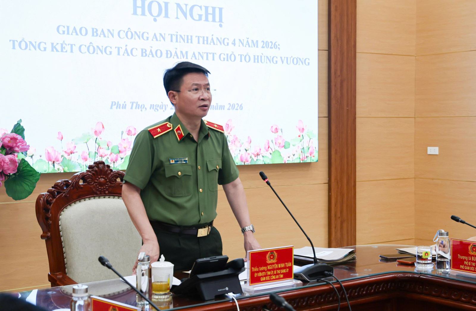 Ngày 28/4/2026, Công an tỉnh tổ chức hội nghị trực tuyến sơ kết, đánh giá tình hình, kết quả công tác tháng 4; tổng kết công tác bảo đảm an ninh trật tự dịp Giỗ Tổ Hùng Vương và triển khai nhiệm vụ công tác tháng 5. Thiếu tướng Nguyễn Minh Tuấn, Ủy viên BTV Tỉnh ủy, Giám đốc Công an tỉnh chủ trì hội nghị. Cùng dự hội nghị tại điểm cầu Công an tỉnh có các đồng chí trong Ban Giám đốc Công an tỉnh, Trưởng các đơn vị, đại diện Ban Thanh niên, Ban Phụ nữ Công an tỉnh. Tại các điểm cầu Công an xã, phường, đồn có chỉ huy, cán bộ, chiến sĩ Công an xã, phường, đồn tham dự.