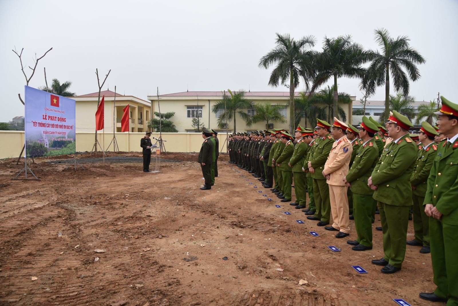Tại lễ phát động, đồng chí Giám đốc Công an tỉnh đã ôn lại truyền thống “Tết trồng cây” do Bác Hồ phát động năm 1959. Từ đó, phong trào “Tết trồng cây” do Bác phát động ngày càng nhận được sự hưởng ứng nhiệt tình của đồng bào và chiến sỹ cả nước, các thế hệ tiếp tục làm theo lời Bác dạy, trồng được nhiều cây xanh, góp phần quan trọng vào việc bảo vệ môi trường. Đối với Công an tỉnh Phú Thọ, Đảng ủy, Ban Giám đốc đặc biệt quan tâm chỉ đạo CBCS thấm nhuần và tích cực làm theo lời Bác dạy để cho “Tết trồng cây”trở thành ngày hội, mang đậm nét văn hóa và giàu ý nghĩa nhân văn mỗi dịp Tết đến xuân về. Với truyền thống đó, nhiều năm qua, CBCS Công an tỉnh đã trồng hàng trăm cây xanh góp phần cải thiện môi trường sinh thái, tạo cảnh quan xanh, sạch, đẹp.
