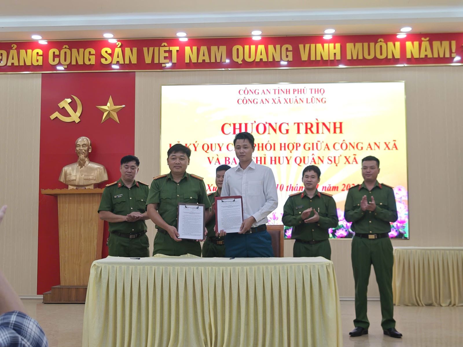 Công an xã Xuân Lũng ký quy chế phối hợp giữa công an xã và Ban Chỉ huy Quân sự xã