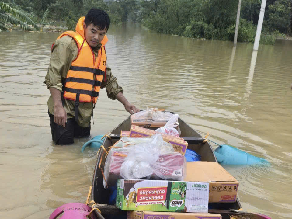 Công an xã đã huy động lực lượng hỗ trợ di dời các hộ dân vùng ngập lũ