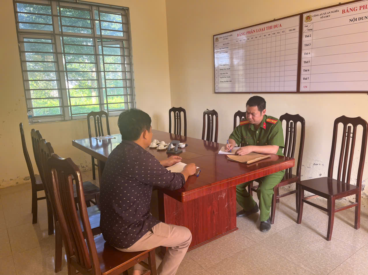 Công an xã An Nghĩa làm việc với người chấp hành án tại cộng đồng