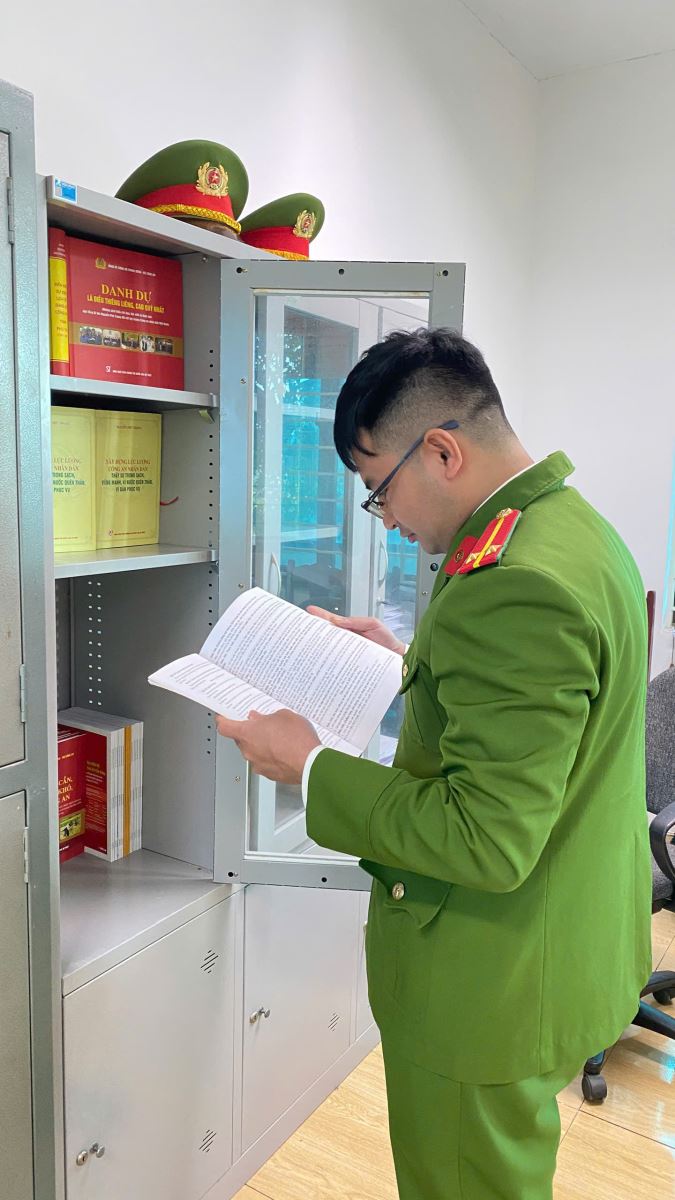Song song với đó, Công an xã Bản Nguyên tích cực đẩy mạnh ứng dụng công nghệ thông tin, từng bước xây dựng mô hình tủ sách pháp luật điện tử. Cán bộ, chiến sĩ chủ động khai thác các cơ sở dữ liệu văn bản quy phạm pháp luật trên môi trường mạng, thường xuyên cập nhật các quy định mới, nhất là những nội dung liên quan đến phòng cháy, chữa cháy, trật tự an toàn giao thông, quản lý cư trú và phòng, chống tội phạm công nghệ cao. Việc số hóa tài liệu giúp quá trình tra cứu nhanh chóng, linh hoạt, đáp ứng kịp thời yêu cầu công tác, nhất là khi thực hiện nhiệm vụ tại cơ sở.
