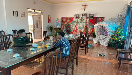 Cùng với đó, Công an xã đã xây dựng kế hoạch cụ thể, phân công cán bộ, chiến sĩ tăng cường lực lượng, phương tiện, tổ chức tuần tra, kiểm soát khép kín địa bàn, nhất là tại các khu vực nhà thờ, cơ sở tôn giáo, điểm sinh hoạt cộng đồng, các tuyến đường trọng điểm và nơi tập trung đông người. Qua đó, kịp thời phát hiện, ngăn chặn, xử lý các hành vi vi phạm pháp luật, không để xảy ra tình huống bị động, bất ngờ.
