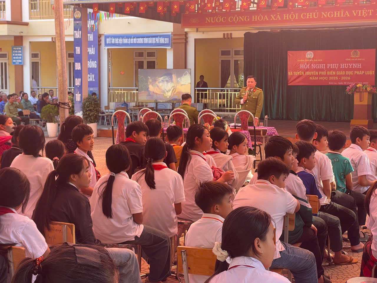 Công an xã Bao La tuyên truyền pháp luật tại Trường Tiểu học và Trung học cơ sở Mai Hịch (11/12/2025)