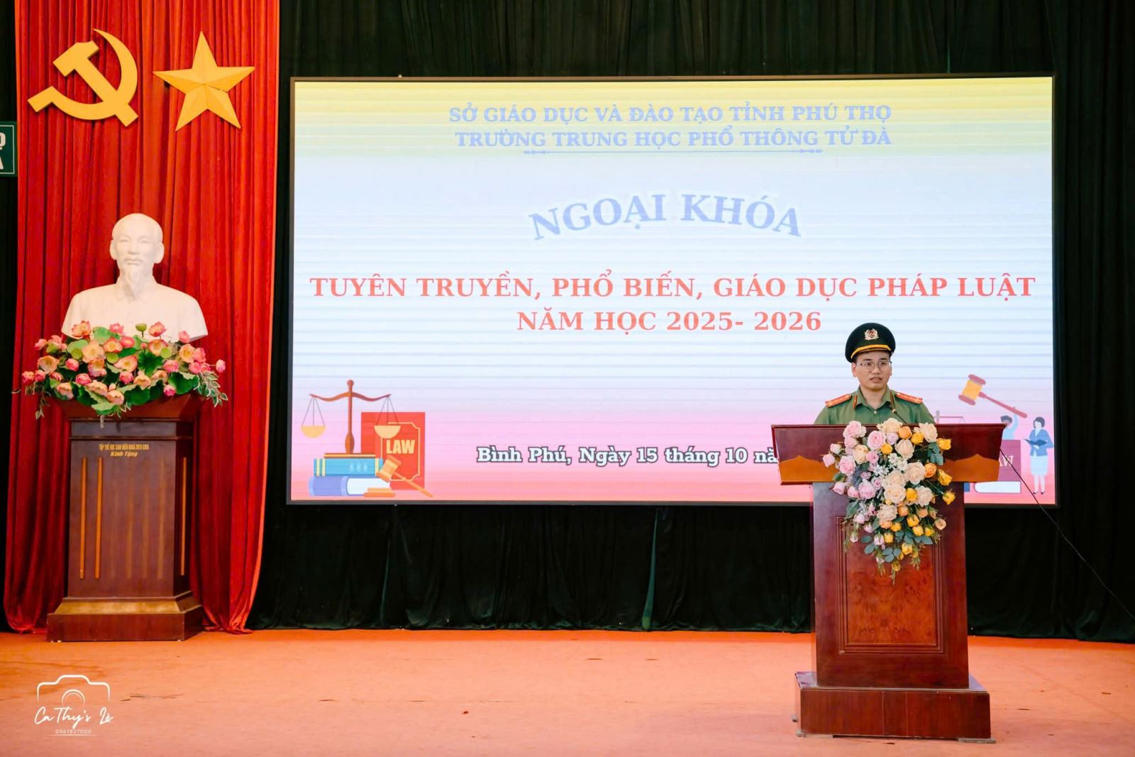 Nhằm tăng cường công tác tuyên truyền, phổ biến, giáo dục pháp luật trong nhà trường, góp phần nâng cao nhận thức, ý thức chấp hành pháp luật của lứa tuổi học sinh, chiều ngày 15/10/2025, Công an xã Bình Phú phối hợp với Phòng Cảnh sát giao thông Công an tỉnh Phú Thọ và Trường THPT Tử Đà tổ chức buổi tuyên truyền, giáo dục pháp luật cho cán bộ, giáo viên và học sinh toàn trường.