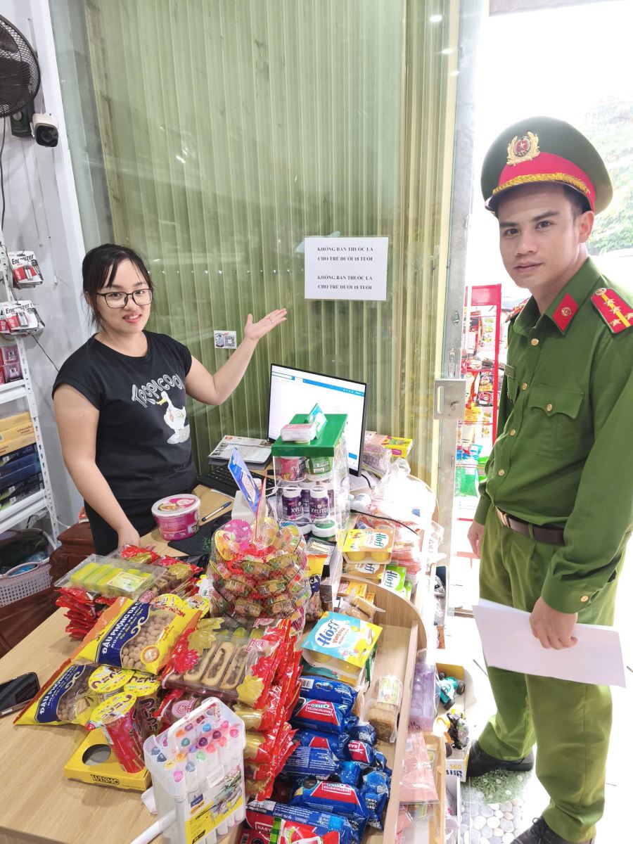 Trong thời gian qua, lực lượng Công an xã đã trực tiếp đến các cửa hàng, cơ sở kinh doanh tạp hoá, quán nước,… hướng dẫn thực hiện việc niêm yết biển thông báo “Không bán rượu, bia, thuốc lá cho người dưới 18 tuổi” tại vị trí dễ quan sát trong cửa hàng. Hoạt động này không chỉ giúp các hộ kinh doanh nắm rõ quy định của pháp luật mà còn góp phần bảo vệ sức khoẻ thế hệ trẻ, phòng ngừa nguy cơ vi phạm pháp luật và tệ nạn xã hội có thể phát sinh từ việc sử dụng rượu, bia, thuốc lá ở độ tuổi chưa thành niên.