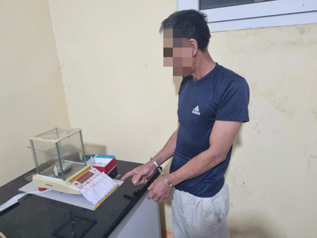 Đối tượng bị bắt là Đ.V.H, sinh năm 1970, hộ khẩu thường trú tại thôn Thiện Kế, xã Bình Xuyên, tỉnh Phú Thọ. Tại thời điểm kiểm tra, lực lượng chức năng thu giữ một gói giấy chứa cục bột màu trắng nghi là ma túy.