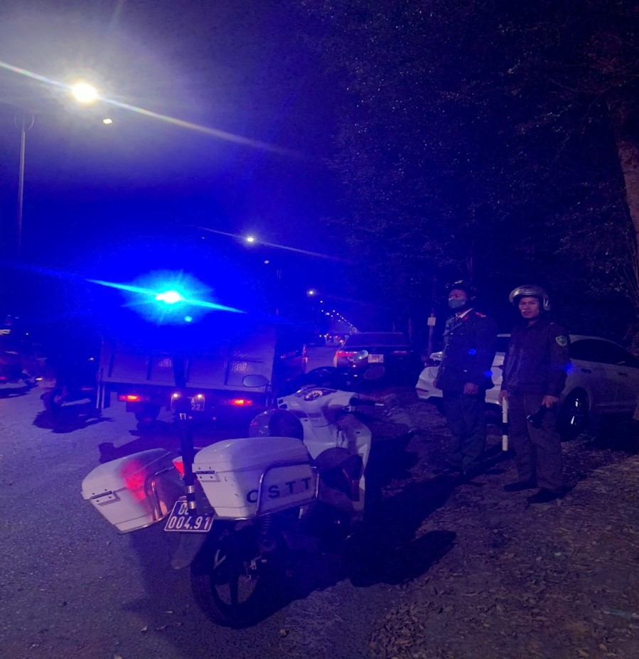 Lực lượng Cảnh sát trật tự tuần tra ban đêm tại các tuyến đường trên địa bàn xã