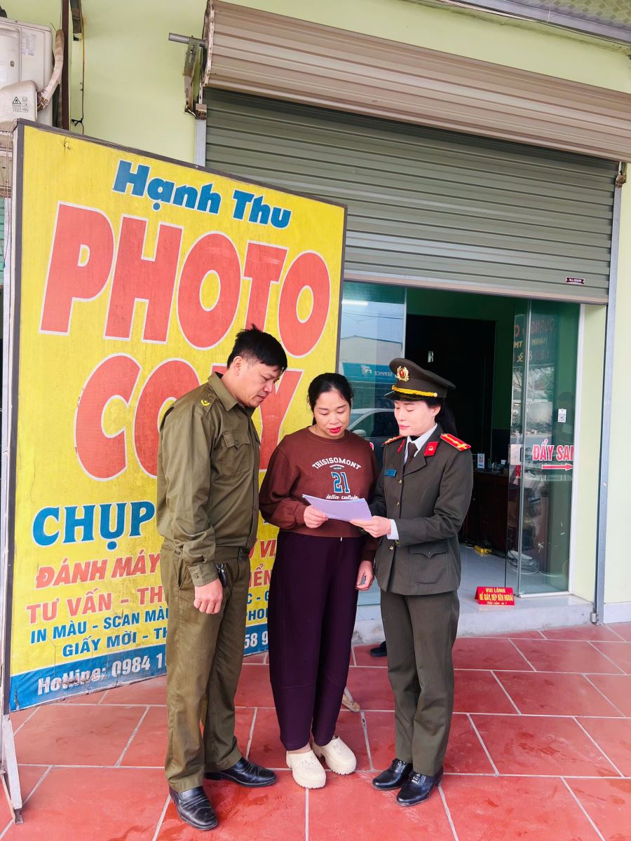 Trong quá trình kiểm tra, lực lượng Công an tập trung làm rõ các nội dung như: giấy phép kinh doanh, điều kiện hoạt động, việc lưu giữ thông tin khách hàng, quy trình tiếp nhận và thực hiện in ấn tài liệu; đồng thời tuyên truyền, hướng dẫn các chủ cơ sở nhận diện các loại tài liệu có nội dung vi phạm pháp luật. Công an xã đã tổ chức cho các cơ sở ký cam kết không thực hiện in ấn, sao chụp, phát hành các loại tài liệu có nội dung xuyên tạc chủ trương, đường lối của Đảng, chính sách, pháp luật của Nhà nước; tài liệu liên quan đến việc phá hoại Đại hội Đảng, bầu cử đại biểu Quốc hội và Hội đồng nhân dân các cấp.
