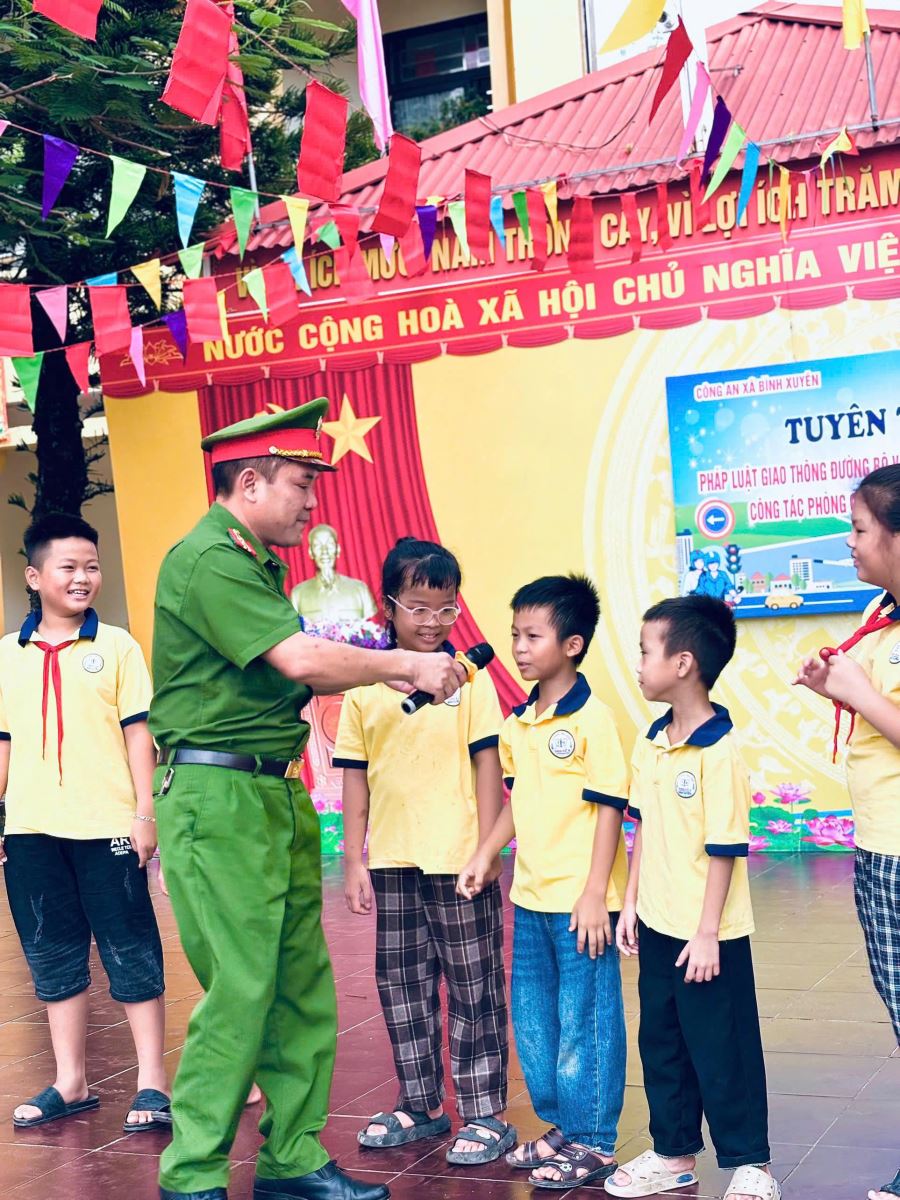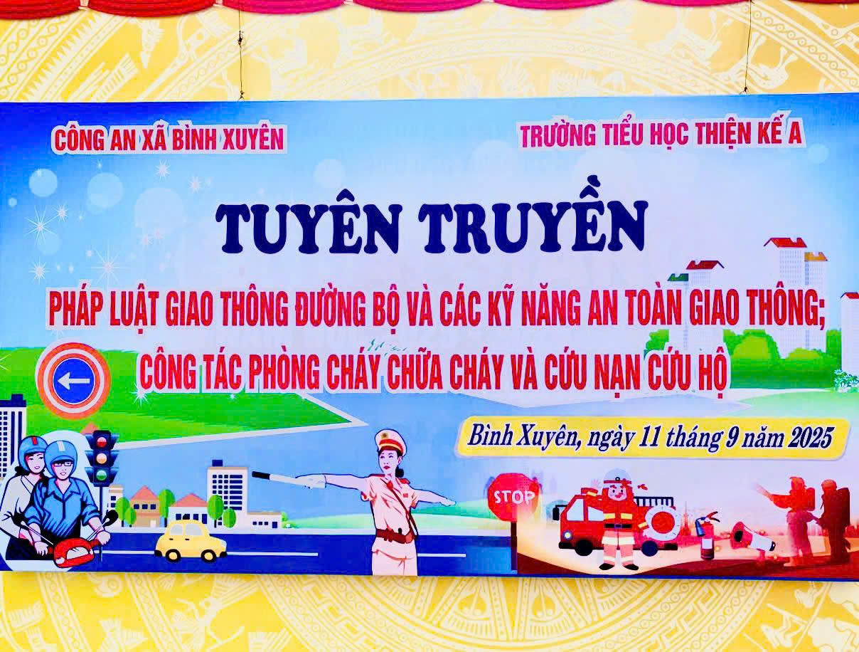 Nhằm trang bị những kiến thức cơ bản về pháp luật giao thông đường bộ và các kỹ năng an toàn giao thông; công tác phòng cháy và CNCH cho các em học sinh đang học tại các trường trên địa bàn xã, sáng ngày 11/9/2025, Công an xã Bình Xuyên phối hợp với Ban Giám hiệu Trường Tiểu học Thiện Kế A tổ chức tuyên truyền, phổ biến, giáo dục pháp luật cho toàn bộ học sinh của trường. Đến dự buổi tuyên truyền có Ban Giám hiệu nhà trường, Công an xã Bình Xuyên; cán bộ, giáo viên, nhân viên cùng hơn 500 em học sinh toàn trường.