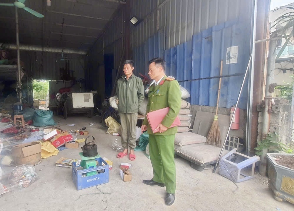 Cán bộ công an kiểm tra đối với các cơ sở thu mua phế liệu