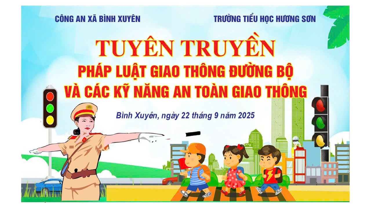 Sáng ngày 22/9/2025, Công an xã Bình Xuyên phối hợp với Trường Tiểu học Hương Sơn tổ chức buổi tuyên truyền pháp luật giao thông đường bộ và các kỹ năng an toàn giao thông cho cán bộ, giáo viên và học sinh nhà trường. Tham dự chương trình có các đồng chí chỉ huy, cán bộ tổ đội Công an xã Bình Xuyên cùng Ban giám hiệu nhà trường. Buổi tuyên truyền thu hút sự tham gia của hơn 800 cán bộ, giáo viên và học sinh nhà trường.