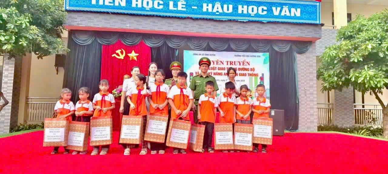Công an xã Bình Xuyên tổ chức tuyên truyền pháp luật giao thông đường bộ và các kỹ năng an toàn giao thông cho đội ngũ cán bộ, giáo viên, học sinh trường Tiểu học Hương Sơn; và trao quà cho các em có hoàn cảnh khó khăn của nhà trường (28/09/2025)