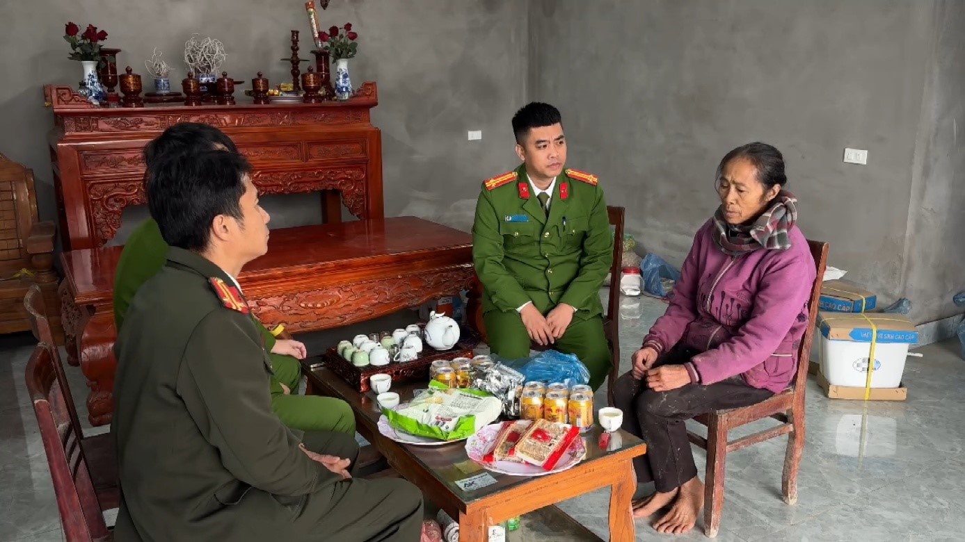 Cán bộ, chiến sĩ Công an xã Cẩm Khê quan tâm, động viên bà Nguyễn Thị Lựu