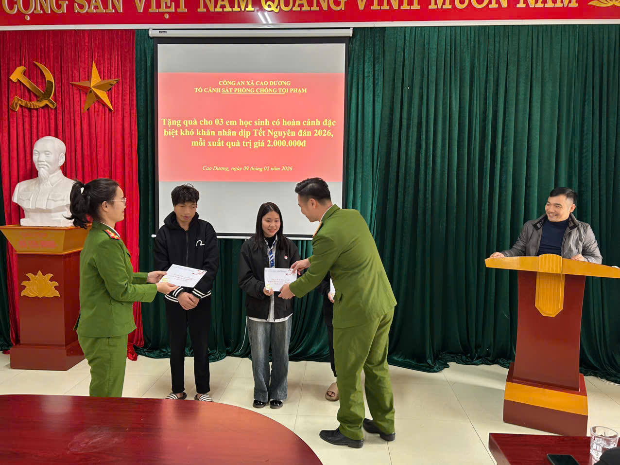 Công an xã Cao Dương tặng quà cho học sinh có hoàn cảnh khó khăn, vươn lên trong học tập (11/02/2026)