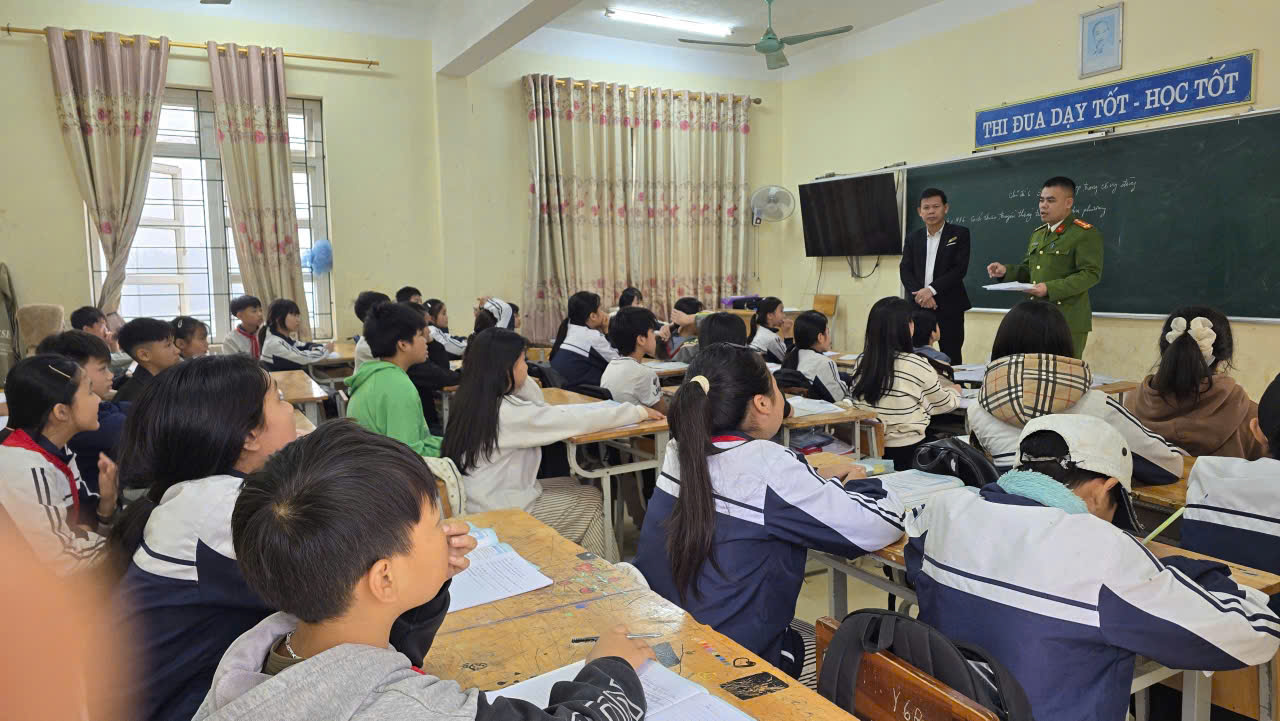 Nhằm bảo đảm an ninh, trật tự, an toàn xã hội trước, trong và sau Tết Nguyên đán năm 2026, thời gian qua, Công an xã Cao Dương đã phối hợp với Trường Tiểu học và Trung học cơ sở Hợp Châu tổ chức tuyên truyền, phổ biến pháp luật và cho học sinh ký cam kết không sản xuất, tàng trữ, vận chuyển, mua bán, sử dụng pháo trái phép.