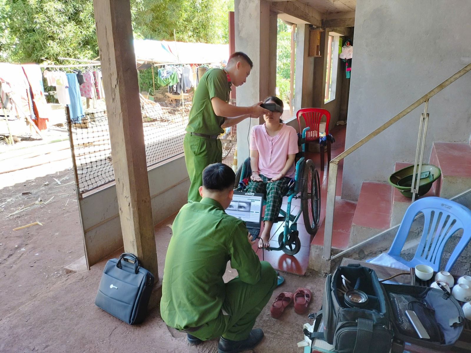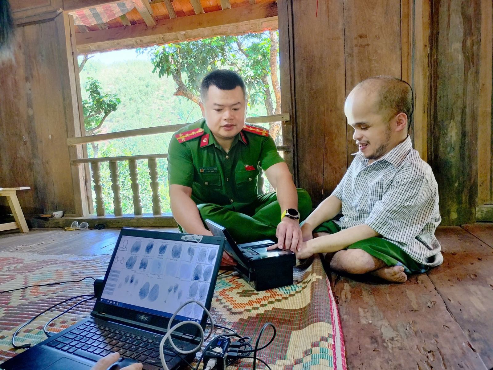Do điều kiện sức khỏe hạn chế, các công dân trên không thể di chuyển đến trụ sở Công an xã để làm thủ tục cấp căn cước. Nhận thấy khó khăn đó, Ban Chỉ huy Công an xã Cao Phong đã chỉ đạo Tổ Cảnh sát khu vực phối hợp cùng Công an xã Mường Thàng mang thiết bị đến tận nhà các công dân để thực hiện quy trình cấp căn cước.