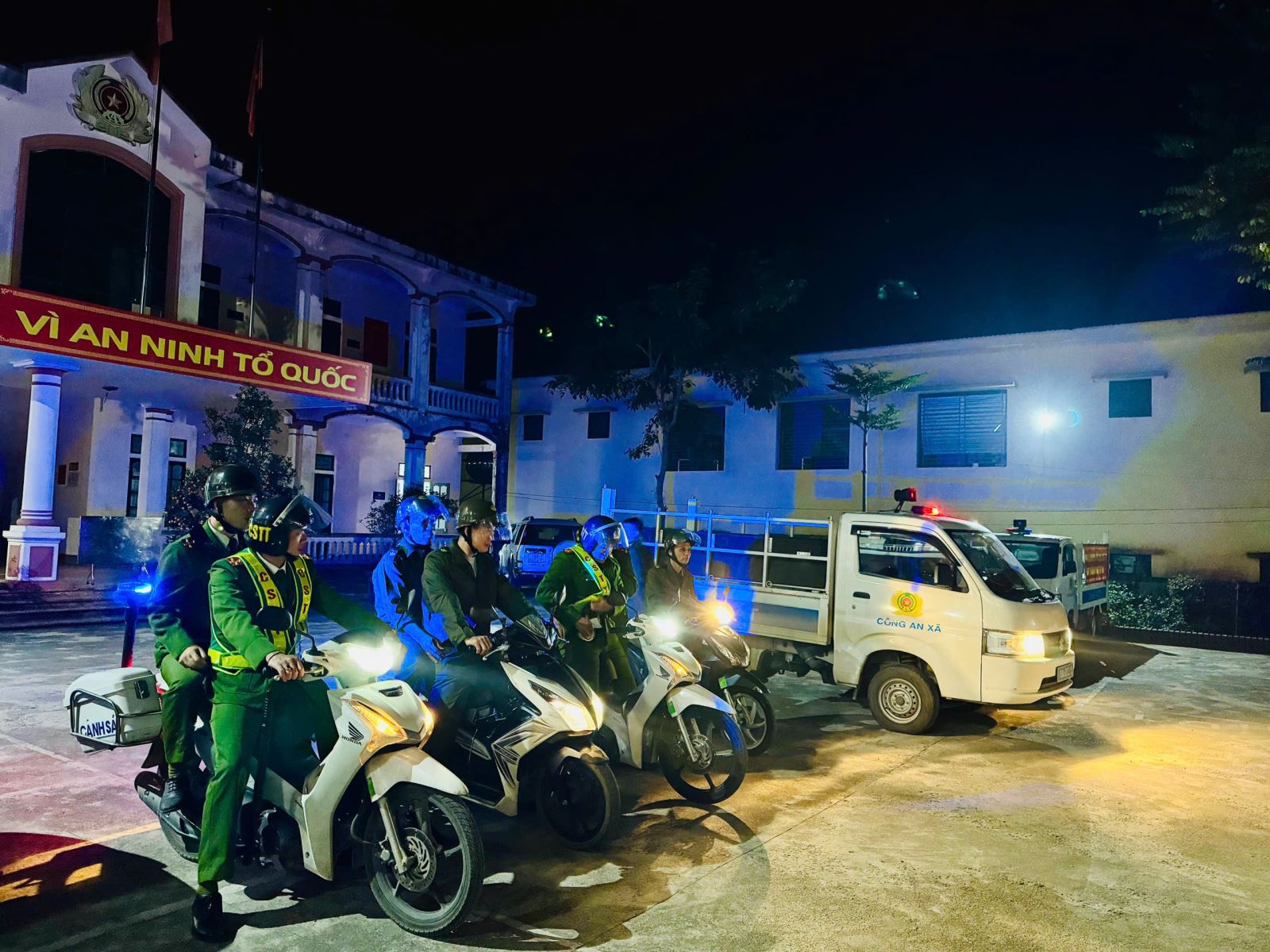 Hình ảnh triển khai đảm bảo an ninh trật tự Song song với tuần tra công khai, Công an xã bố trí lực lượng hóa trang, mật phục tại các khu vực phức tạp, các điểm có nguy cơ phát sinh tệ nạn xã hội, vi phạm trật tự an toàn giao thông, cháy, nổ, đặc biệt tại các địa điểm diễn ra lễ hội, nơi tập trung đông người. Việc kết hợp linh hoạt giữa công khai và bí mật góp phần nâng cao hiệu quả phòng ngừa, đấu tranh, xử lý tội phạm ngay từ khi manh nha.
