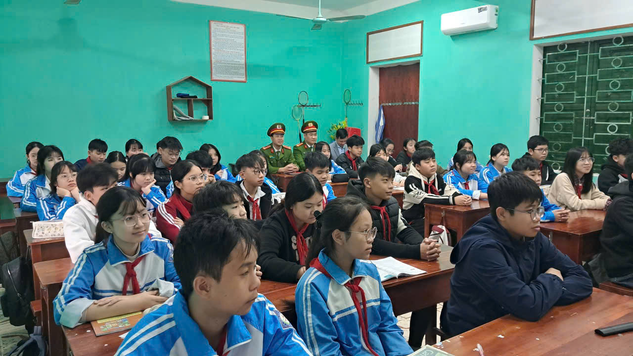 Buổi tuyên truyền được tổ chức theo hình thức trao đổi trực tiếp, kết hợp hỏi đáp, tạo không khí cởi mở, giúp học sinh chủ động tham gia thảo luận, đặt câu hỏi và chia sẻ quan điểm về các vấn đề liên quan đến an toàn, trật tự trong trường học và ngoài xã hội. Nội dung tuyên truyền tập trung định hướng học sinh hình thành ý thức tự giác chấp hành pháp luật, không tham gia các hành vi vi phạm; đồng thời phát huy vai trò của học sinh trong việc tuyên truyền, vận động gia đình và người thân thực hiện nghiêm các quy định của pháp luật.