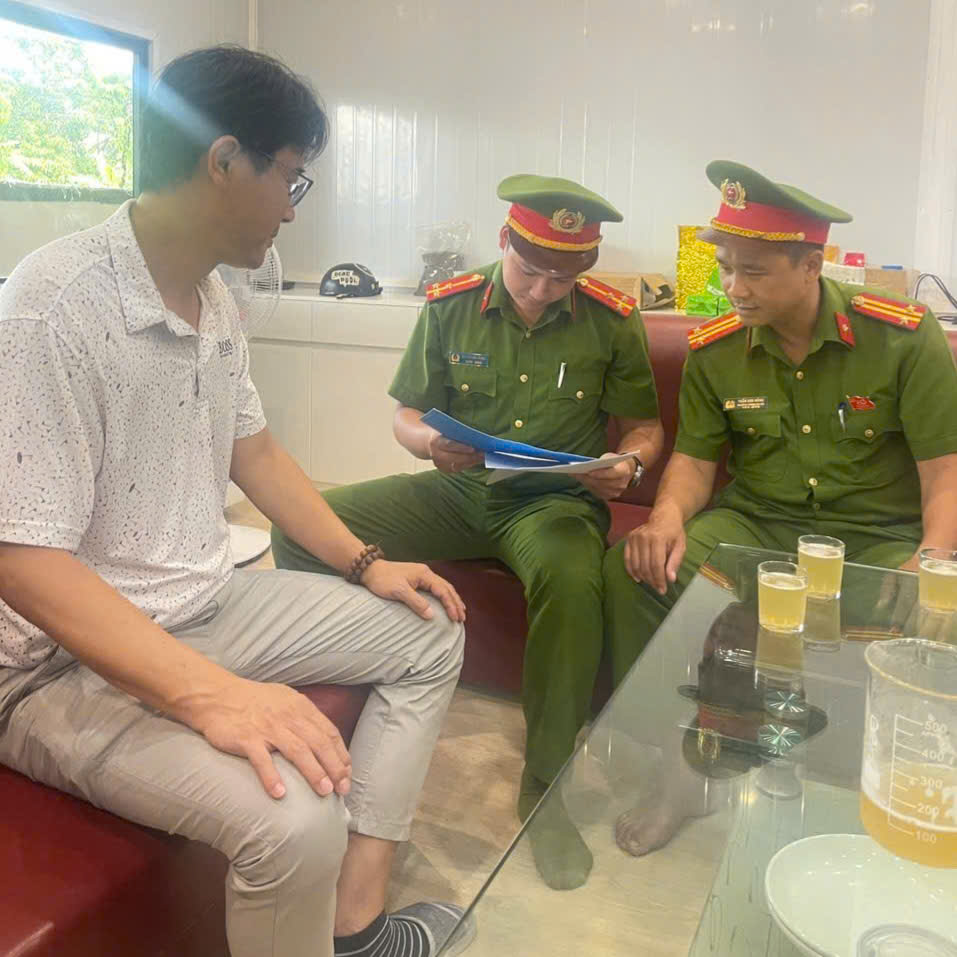 Lực lượng Công an xã kiểm tra giấy tờ nhập cảnh, lao động của người nước ngoài tại Công ty Cổ phần Phú Thanh Trà