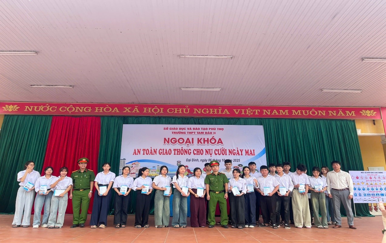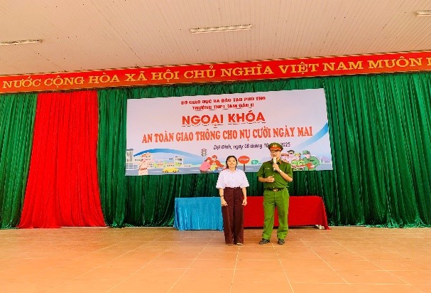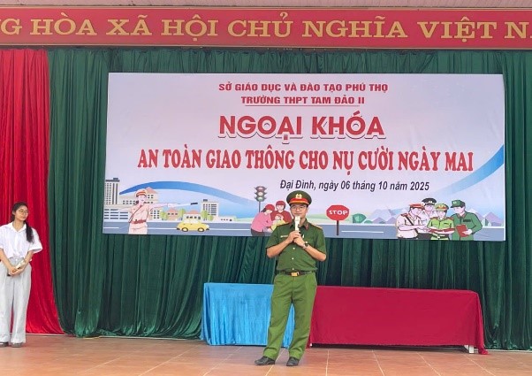 Sáng ngày 06/10/2025, trong buổi sinh hoạt ngoại khoá đầu tuần, Trường THPT Tam Đảo II phối hợp với Công an xã Đại Đình tổ chức chương trình tuyên truyền “An toàn giao thông cho nụ cười ngày mai” cho học sinh nhà trường.