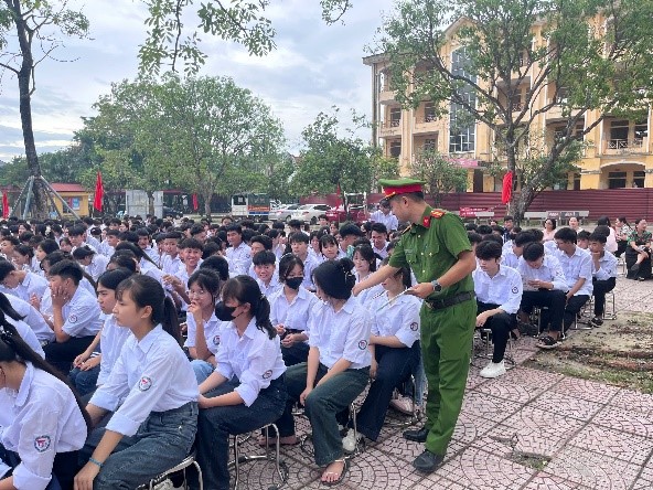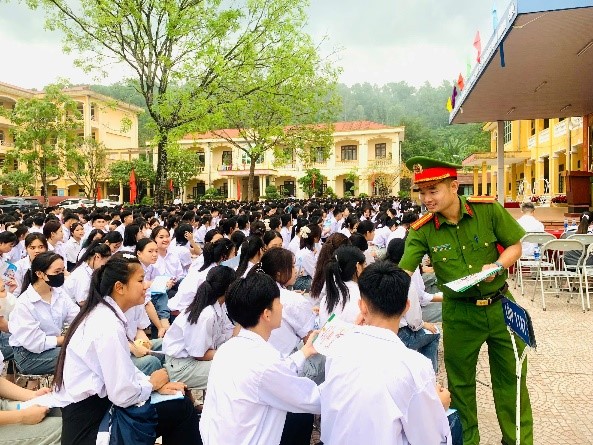 Cùng với đó đồng chí Thiếu tá Đào Văn Trường - Cán bộ Công an xã Đại Đình chia sẻ nhiều kiến thức bổ ích, tình huống thực tế sinh động và bài học sâu sắc, giúp học sinh nâng cao ý thức chấp hành pháp luật, biết cách tự bảo vệ bản thân, góp phần xây dựng môi trường học đường an toàn, lành mạnh, không tệ nạn.