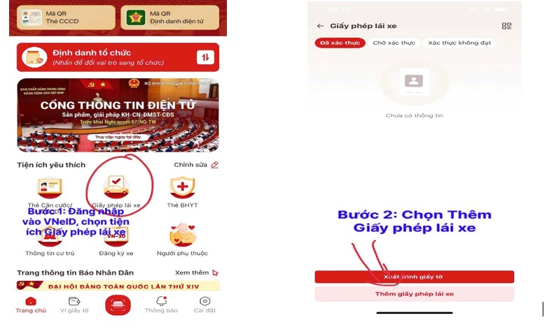 Công an xã Đại Đình hướng dẫn công dân thực hiện các bước tích hợp Giấy phép lái xe điện tử như sau: