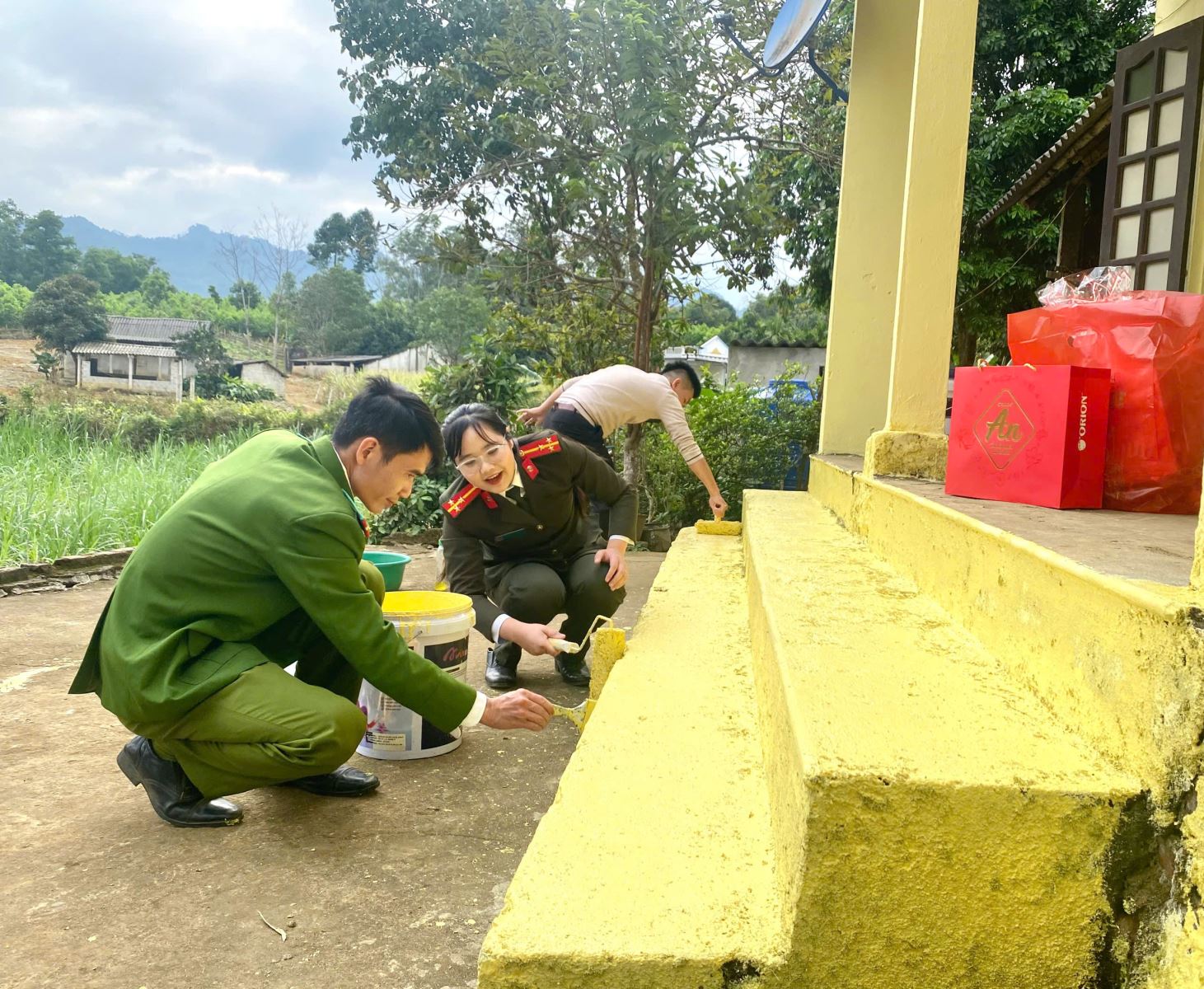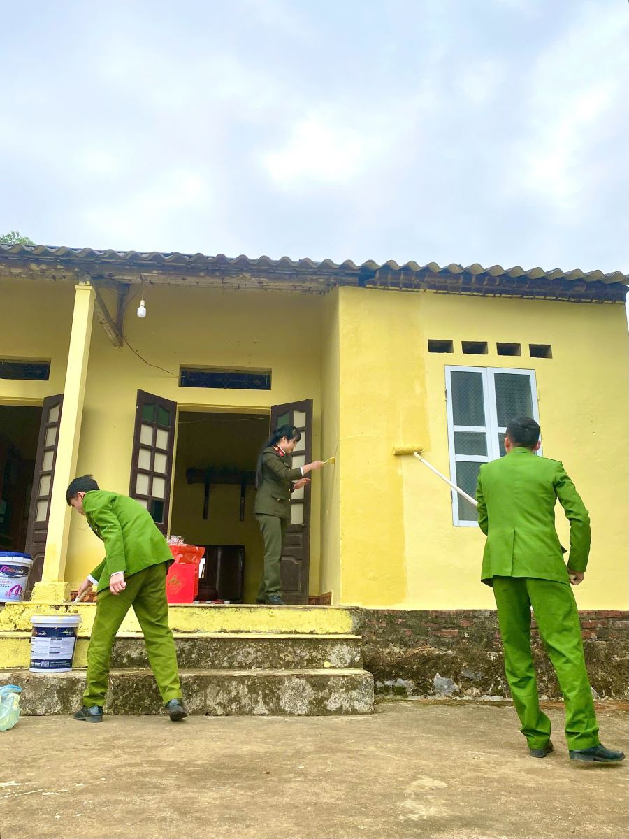 Bên cạnh đó, Công an xã Đại Đồng đã chủ động phối hợp với các nhà hảo tâm trên địa bàn triển khai hoạt động sơn mới nhà ở cho 01 hộ gia đình bà Trần Thị Tần tại xóm Đa, xã Đại Đồng có hoàn cảnh đặc biệt khó khăn. Gia đình bà Tần thuộc diện hộ cận nghèo, sống neo đơn, ngôi nhà đã xây dựng lâu năm, tường xuất hiện nhiều vết bong tróc, ẩm mốc ảnh hưởng trực tiếp đến đời sống. Trước thực tế đó, Công an xã đã trực tiếp khảo sát nắm tình hình, kêu gọi sự chung tay, hỗ trợ từ các mạnh thường quân trên địa bàn. Chỉ trong thời gian ngắn, công trình đã được hoàn thành với sự ủng hộ của nhà hảo tâm, sự tham gia tích cực của cán bộ, chiến sĩ. Ngôi nhà sau khi được sơn sửa khang trang, sạch đẹp hơn, không chỉ cải thiện điều kiện sinh hoạt mà còn tiếp thêm động lực để gia đình vươn lên trong cuộc sống.