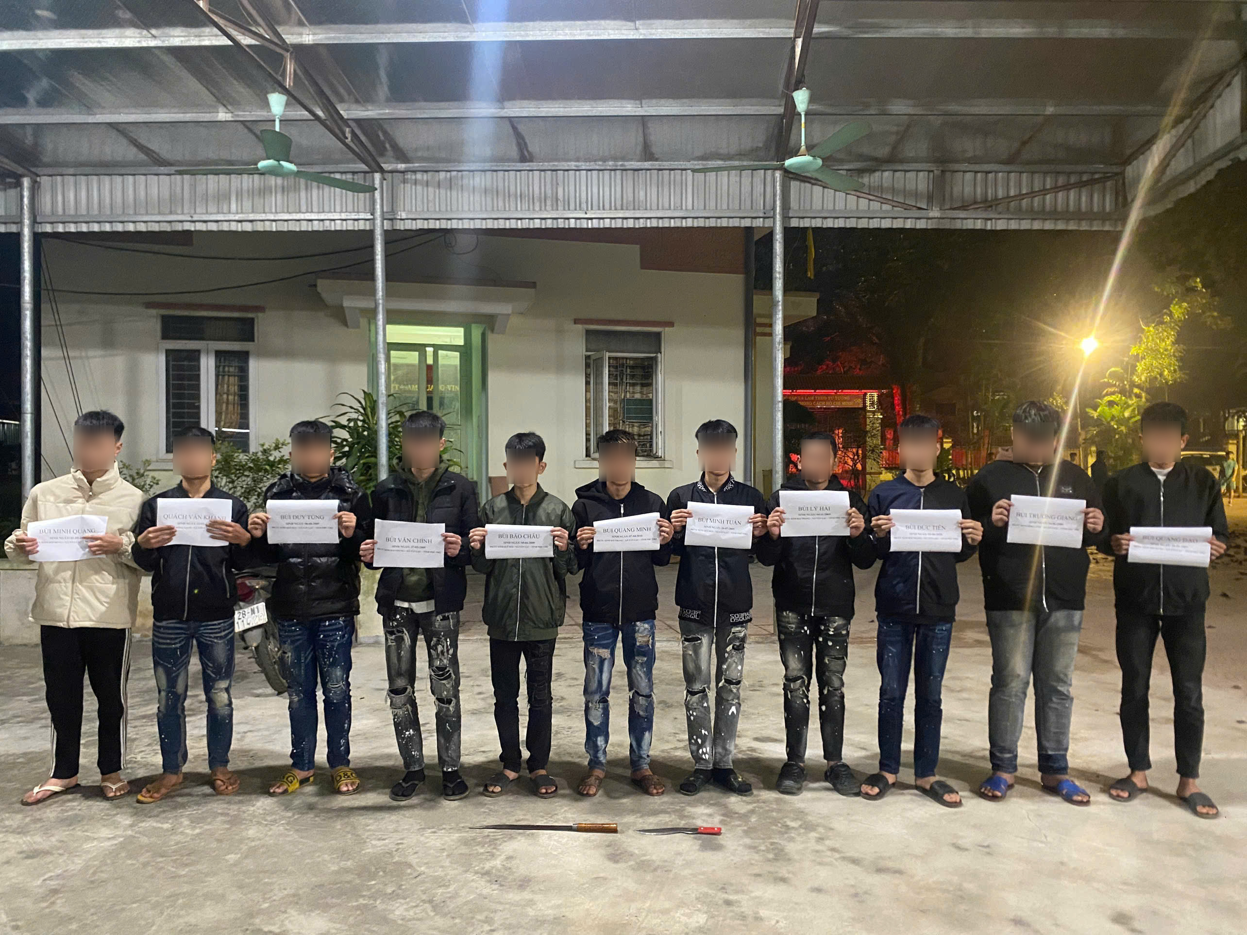 Theo kết quả điều tra ban đầu, vào khoảng 23 giờ ngày 22/11/2025, 11 đối tượng sinh năm từ 2008 đến 2010, cùng trú tại xã Tân Lạc, tỉnh Phú Thọ đã tụ tập, điều khiển 05 xe mô tô di chuyển theo tuyến Quốc lộ 12B xuống khu vực chợ mía, xã Đại Đồng để chơi. Đáng chú ý, nhóm đối tượng mang theo hung khí nguy hiểm, gồm dao tự chế dài 35cm, dao tự chế dài 60,5cm, đồng thời trên đường đi còn nhổ, bẻ các ống kim loại ven đường làm thành khúc mang theo trên người. Đến khoảng 01 giờ 35 phút ngày 23/11/2025, khi dừng lại tại khu vực cây xăng Yên Nghiệp (đường Hồ Chí Minh, thuộc xóm Riềng, xã Đại Đồng), nhóm đối tượng phát hiện một xe mô tô chở 04 thanh thiếu niên cùng trú tại xã Đại Đồng đang lưu thông qua khu vực. Không có mâu thuẫn từ trước, các đối tượng vẫn đuổi theo với mục đích tấn công, chặn đầu xe, sử dụng dao gây thương tích cho một thanh niên, đồng thời dùng gậy kim loại đập phá xe mô tô, làm hư hỏng nhiều bộ phận. Sau khi gây án, các đối tượng nhanh chóng rời khỏi hiện trường. Hành vi của nhóm đối tượng thể hiện rõ bản chất côn đồ, coi thường pháp luật, xâm phạm nghiêm trọng đến tài sản, sức khỏe, tính mạng của người khác, gây tâm lý hoang mang trong Nhân dân, tiềm ẩn nguy cơ mất an ninh trật tự nếu không được xử lý kịp thời, nghiêm minh.
