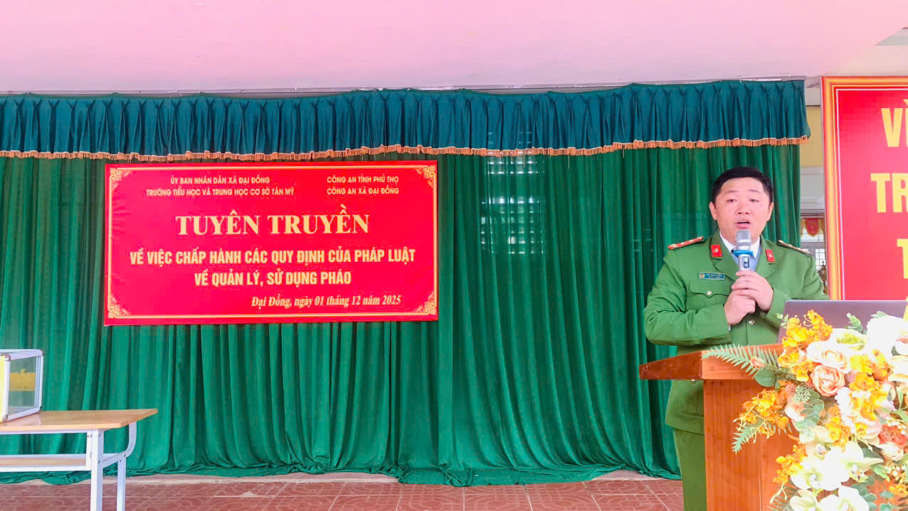 Công an xã Đại Đồng tổ chức tuyên truyền pháp luật và ký cam kết về phòng chống sử dụng pháo nổ cho học sinh (02/12/2025)