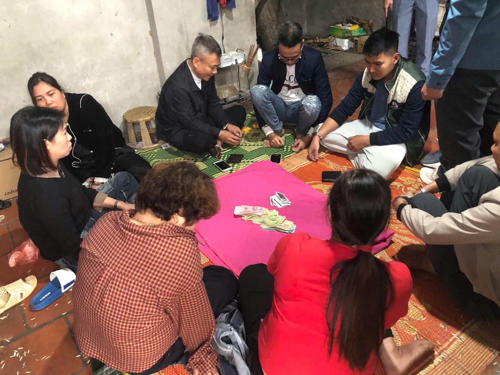 Các đối tượng gồm: Lê Quảng Ba, sinh năm 1983; Trần Thị Hoa, sinh năm 1988; Vũ Thị Vân, sinh năm 1982; Lê Thị Thược, sinh năm 1973; Đặng Thị Mai Thu, sinh năm 1984; Đoàn Văn Dinh, sinh năm 1972; Hà Xuân Khu, sinh năm 1989; Nguyễn Văn Đông, sinh năm 1999, đều trú tại xã Đan Thượng.
