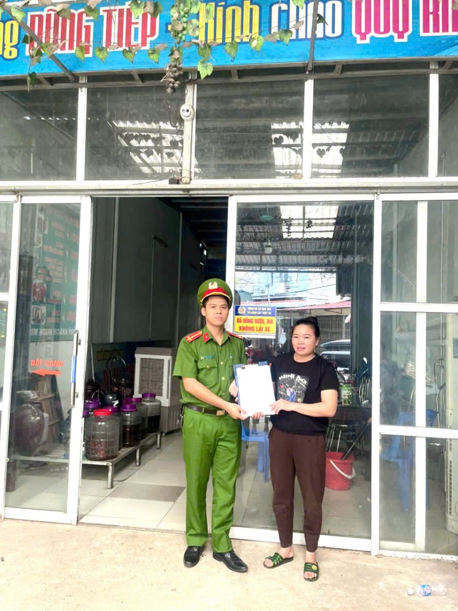 Đồng thời, Công an xã đã phát động dán khẩu hiệu, niêm yết thông điệp “Đã uống rượu, bia - Không lái xe” tại các điểm kinh doanh dịch vụ ăn uống, quán karaoke, nhà hàng... tạo hiệu ứng tuyên truyền trực quan, sinh động, giúp người dân dễ ghi nhớ và hình thành thói quen ứng xử văn minh khi tham gia giao thông.