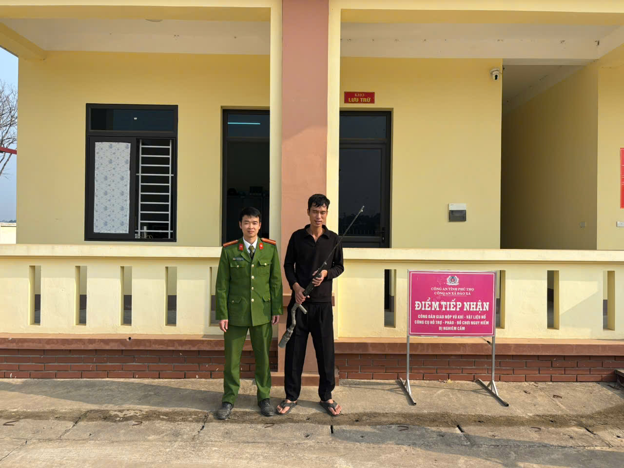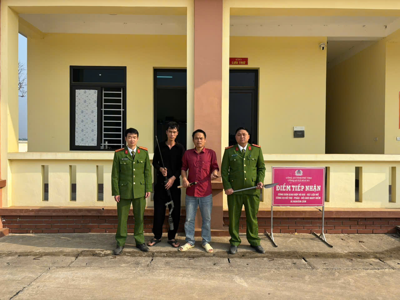Kết quả, chỉ trong hai ngày đầu ra quân thực hiện cao điểm, Công an xã đã vận động Nhân dân tự giác giao nộp 01 súng hơi, 01 dao phóng lợn và 01 dao tự chế được cất giữ từ lâu. Toàn bộ số vũ khí, công cụ hỗ trợ trên đã được lực lượng Công an tiếp nhận, quản lý và xử lý đúng quy trình, bảo đảm tuyệt đối an toàn theo quy định của pháp luật. Việc tiếp nhận được thực hiện công khai, đúng thủ tục, góp phần củng cố niềm tin của Nhân dân và tạo hiệu ứng lan tỏa tích cực trong phong trào giao nộp vũ khí trên địa bàn.