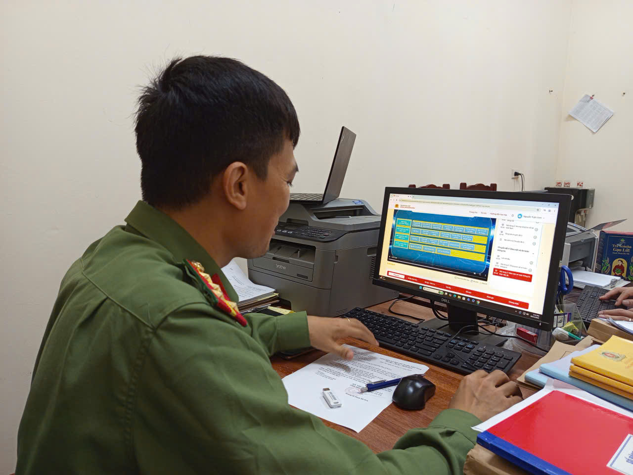 Trong quá trình triển khai, lãnh đạo đơn vị quan tâm, đôn đốc và tạo điều kiện về thời gian, phương tiện để cán bộ, chiến sĩ chủ động học tập. Đối với những đồng chí chưa quen với hình thức học trực tuyến, Công an xã bố trí cán bộ am hiểu công nghệ thông tin hướng dẫn tận tình, bảo đảm 100% cán bộ, chiến sĩ tiếp cận và hoàn thành khóa học.