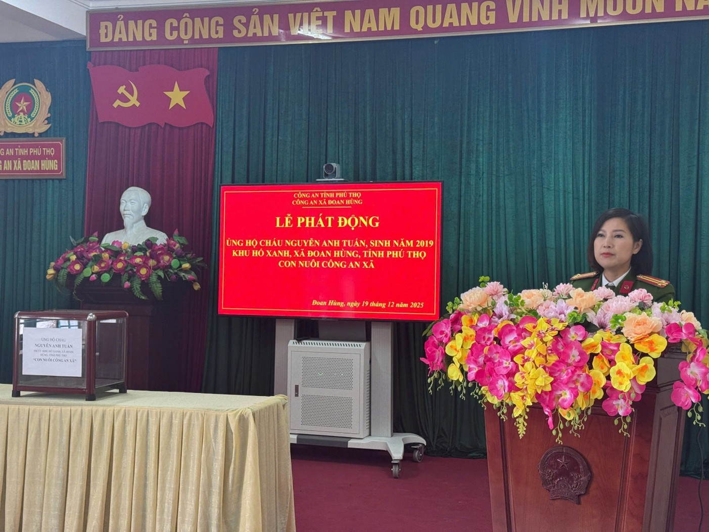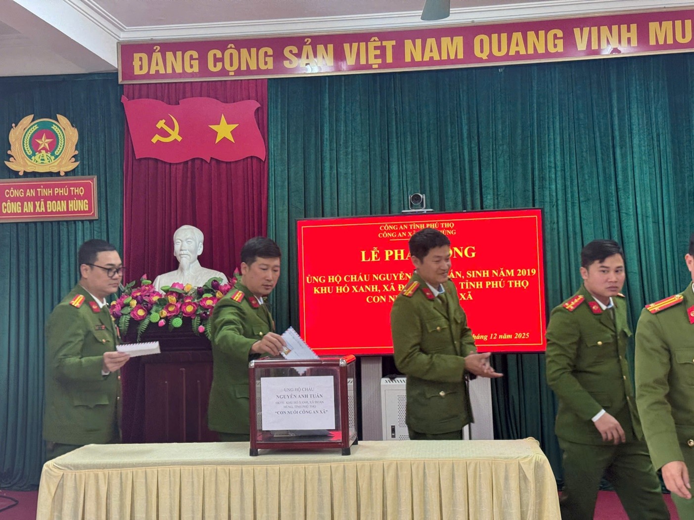 Nhằm góp phần chăm lo trẻ em có hoàn cảnh đặc biệt khó khăn trên địa bàn, ngày 19/12/2025, Công an xã Đoan Hùng đã tổ chức phát động và vận động ủng hộ mô hình “Con nuôi Công an xã” trong toàn thể cán bộ, chiến sĩ đơn vị.