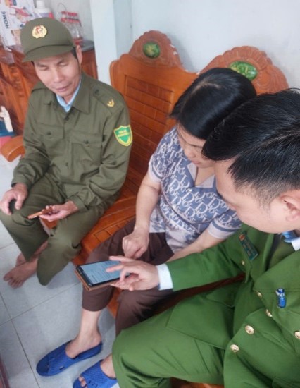 Song song với công tác kiểm tra cư trú, Công an xã đã lồng ghép tuyên truyền, hướng dẫn người dân cài đặt và sử dụng ứng dụng định danh điện tử VNeID. Tại các buổi làm việc trực tiếp với hộ gia đình, cán bộ chiến sĩ đã tận tình hướng dẫn công dân tích hợp các loại giấy tờ quan trọng như: Giấy phép lái xe, thẻ Bảo hiểm y tế, thông tin tài khoản an sinh xã hội vào tài khoản định danh điện tử mức độ 2.