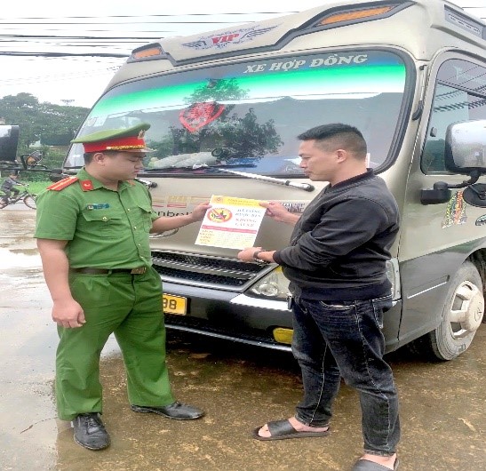 Công an xã Đông Thành tuyên truyền pháp luật giao thông cho các hộ kinh doanh vận tải hành khách